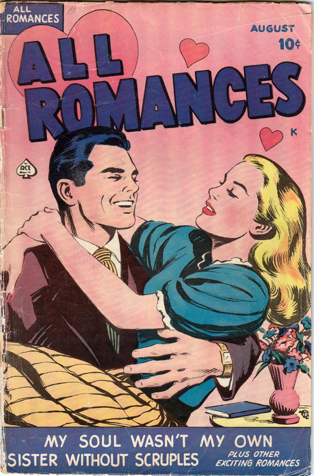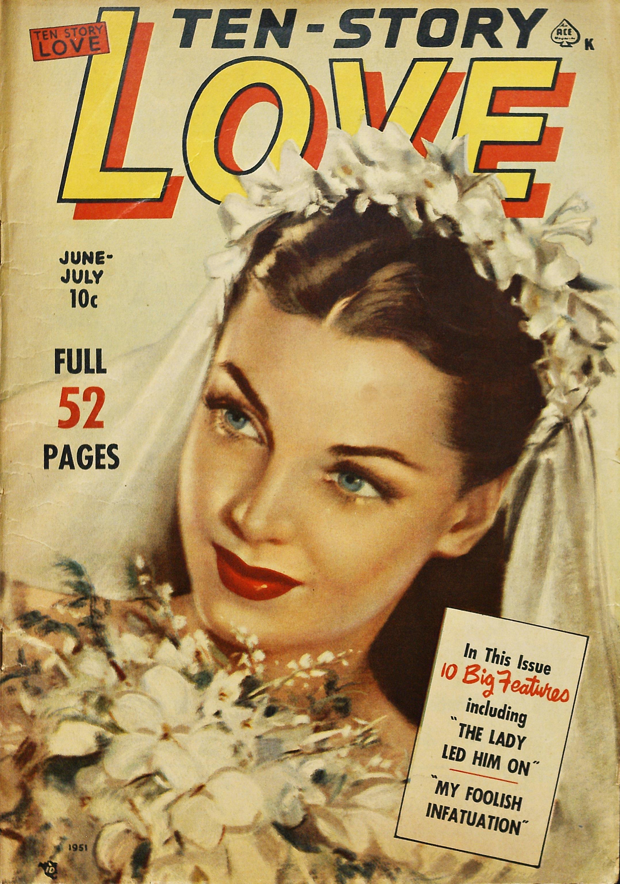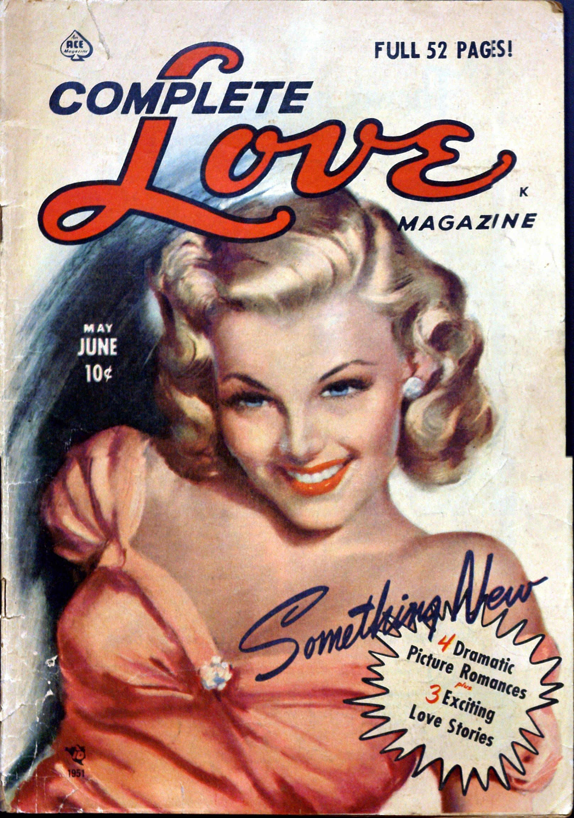 Les séries les plus longues d’Ace étaient les bandes dessinées romantiques de la société : Glamorous Romances, Love At First Sight, Love Experiences et Real Love, qui ont commencé à la fin des années 1940 alors que les livres de super-héros disparaissaient, et ont continué jusqu’à ce que la société cesse de publier des bandes dessinées en 1956. D’autres titres romantiques à longue durée de vie tels que Complete Love Magazine et Ten Story Love ont commencé comme des magazines de pulps avant de passer au format de bandes dessinées au début des années 1950.