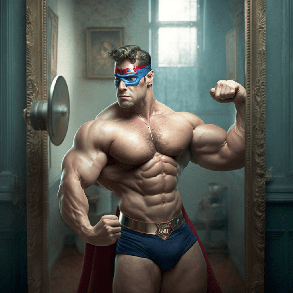 Watching his muscles flex, in the mirror below