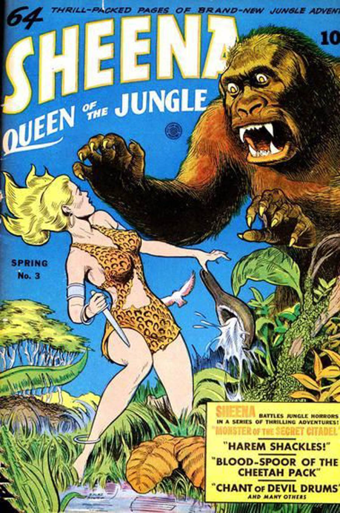 Fiction House went on to publish Jungle Comics, Wings Comics, Planet Comics, Rangers Comics, and Fight Comics during the early 1940s. Most of these series took their titles and themes from the Fiction House pulps. The company also published several other titles, among them the Western-themed Indians and Firehair, jungle titles Sheena, Queen of the Jungle and Wambi, and five issues of Eisner’s The Spirit. Fiction House’s comic books were known for their pinup-style good girl art, with many of the female characters dressed in skimpy outfits and striking provocative poses.