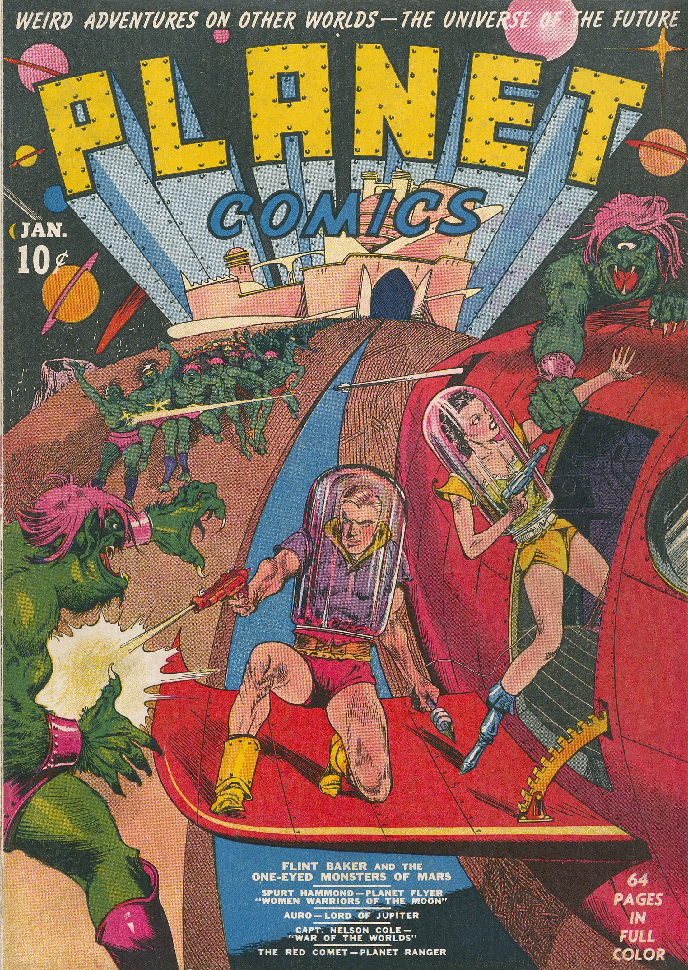 Fiction House’s first title with science fiction interest was Jungle Stories, which was launched in early 1939. It was not primarily a science fiction magazine, but it often featured storylines with marginally science fictional themes, such as survivors from Atlantis. At the end of 1939, Fiction House decided to add an SF magazine to its line-up, and Planet Stories was born. It was published by Love Romances, a subsidiary company that Fiction House created to publish the company’s romance titles.