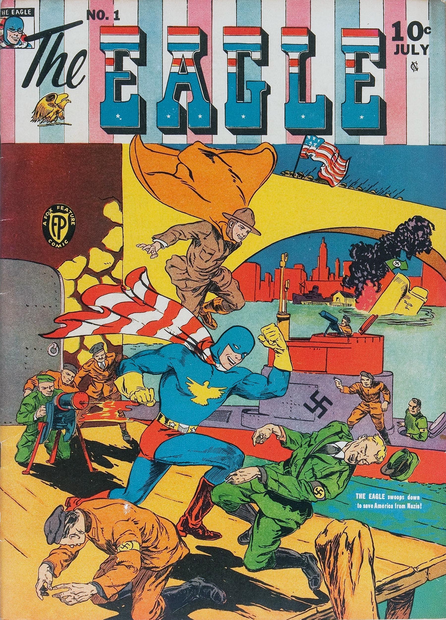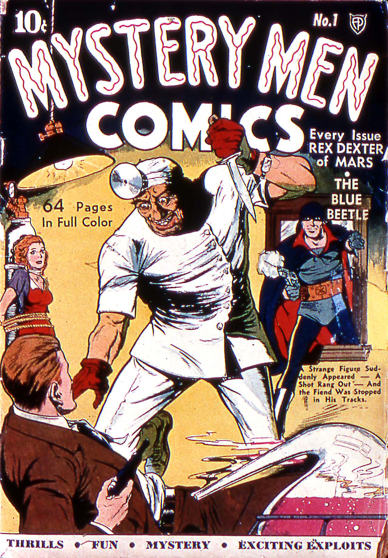 Fox’s Blue Beetle was one of the first comic book superheroes to feature a full-face mask and to be featured in his own solo title. The character was created by writer Charles Nicholas Wojtkoski and artist Charles Clarence « CC » Beck, and made his first appearance in Mystery Men Comics #1 in 1939. Sheena, Queen of the Jungle, co-created by Will Eisner and Jerry Iger, debuted in Wags #1 in 1937, and was later published by Fox Feature Syndicate.