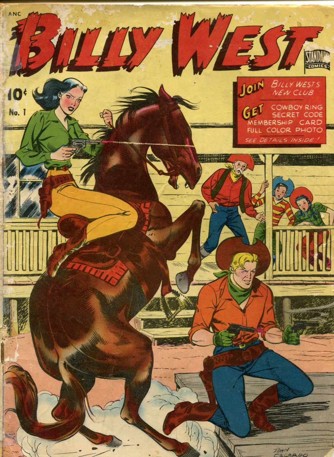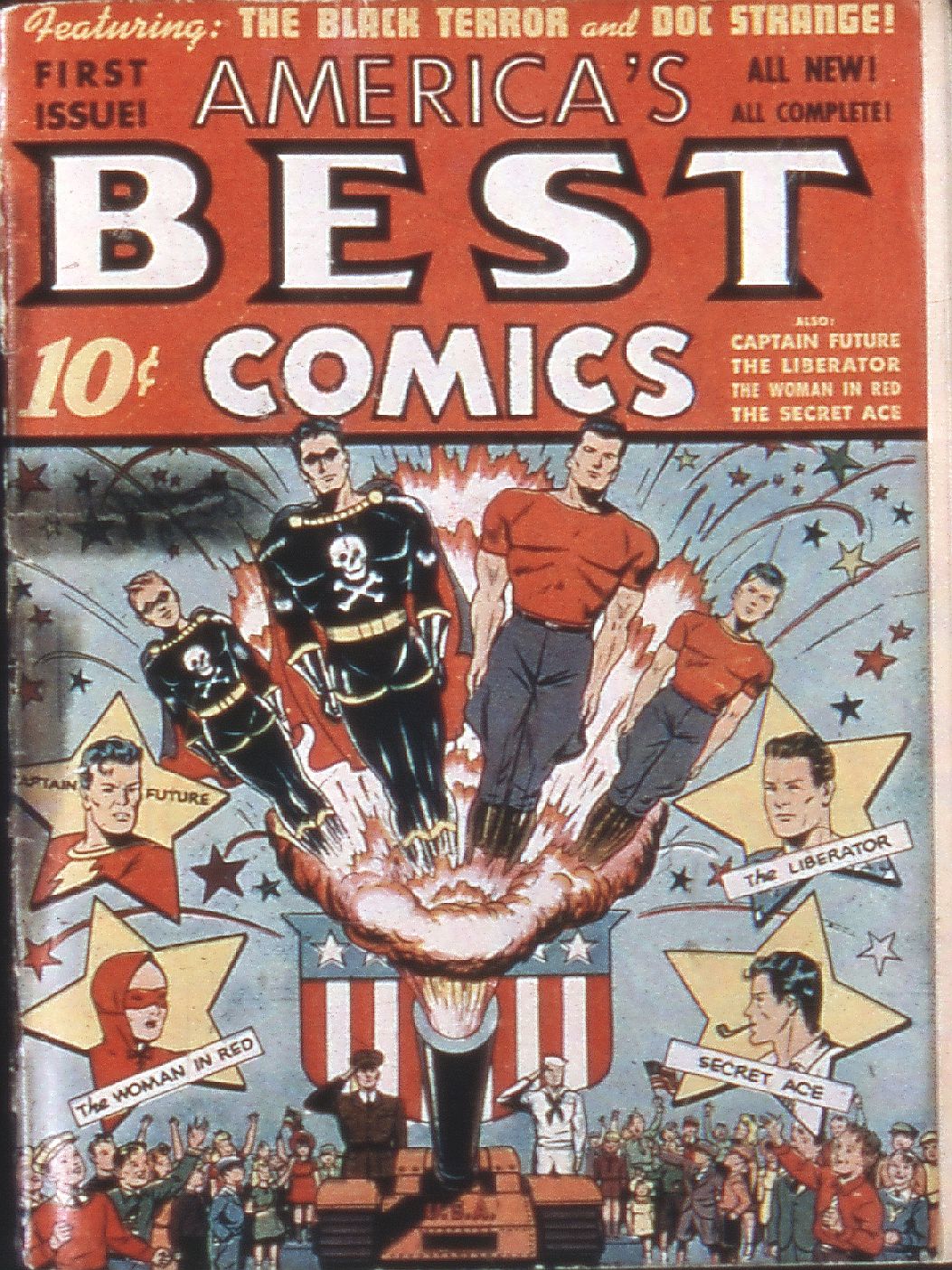 During the Golden Age of comic books from 1939 to 1956, Standard was a prolific publisher. One of its best-known characters, published under the Better imprint, was the Black Terror. In June 1949, Better and Nedor were consolidated as the Standard Comics line and given a new « Standard Comics » flag-like cover logo. Previously, the titles had no publisher logo.